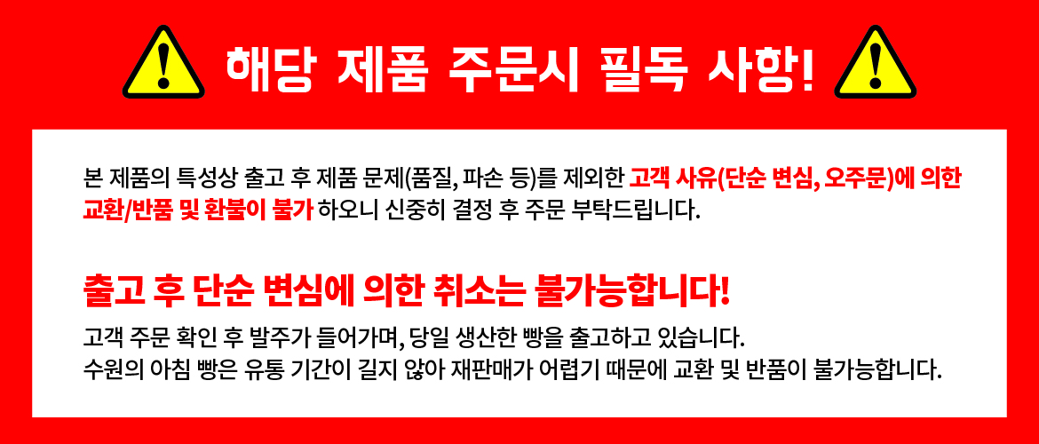 냉동빵이 아닌 매일 새벽 신선한 재료로 만들어 갓구운 빵으로 발송됩니다.